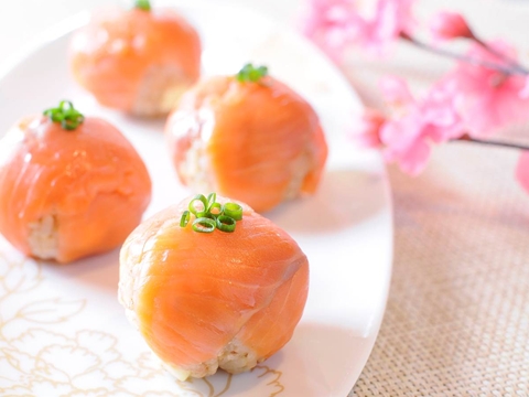 コロンとかわいい手まり寿司はおもてなしにもピッタリ。エビやマグロでもいいですね!