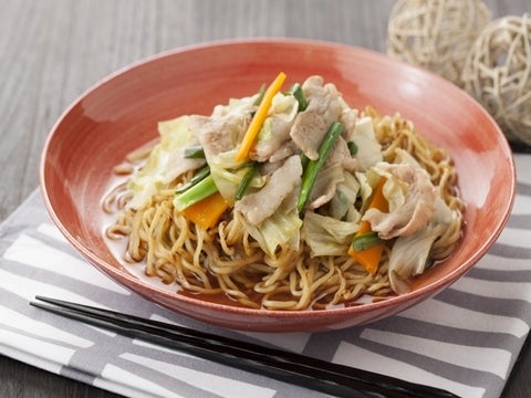 たっぷりのスープが美味しそう!どんどん食べられちゃう焼きそばです。