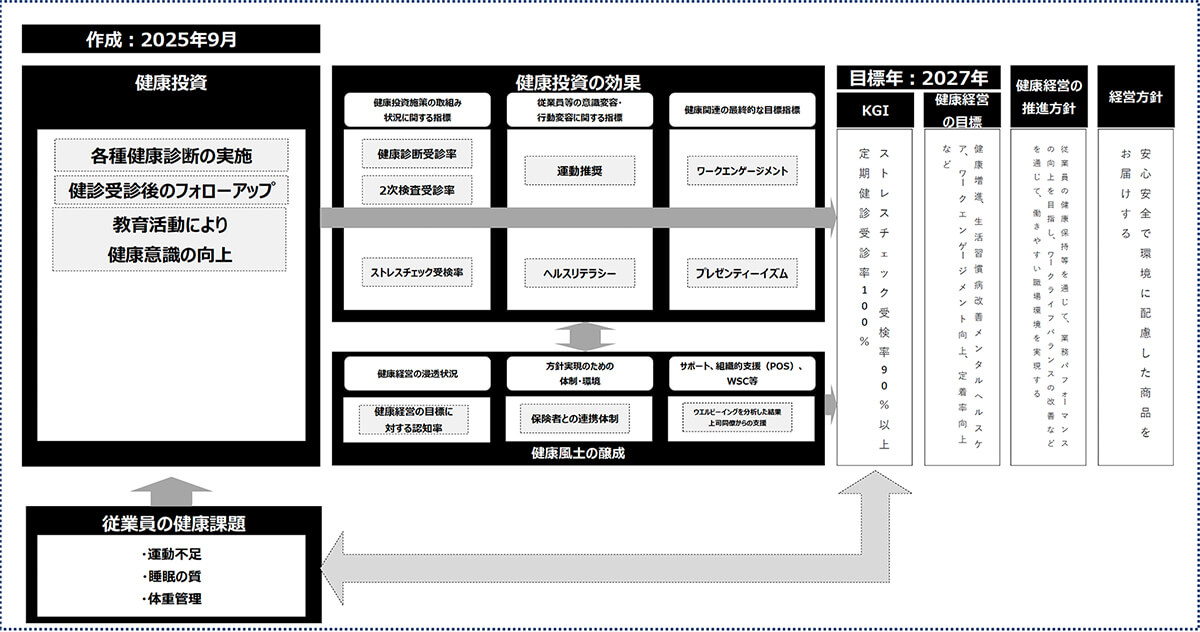 ヤマサ醤油株式会社は、社員一人ひとりの心身の健康を尊重し、イキイキと働ける職場環境を整備するとともに、社員とそのご家族を含めた心身の健康づくりをサポートします。社員が安全に、安心して働けるよう、以下の項目に取り組むことを宣言します。