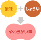 コーヒーに砂糖を加えると苦みがやわらぐと同様に、漬かりすぎた漬け物や酸味の強い酢の物にしょうゆを少したらすと、味が弱められ、やわらかい味になるのがこの効果です。