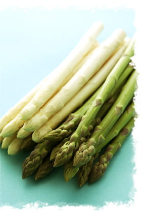 ホワイトは土の中で育てるので日光に当たらず、白いまま成長していきます。逆にグリーンは日光に当てて育てます。ホワイトは皮が硬いのでうすくむいてから、塩とレモンを加えて長めに茹でるときれいな色に仕上がります。レタスやトマトなどとともに朝食のサラダにどうぞ。