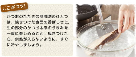 大きめのボウルに氷水を用意してそこにSTEP2のかつおを入れ、3〜4分冷やす。