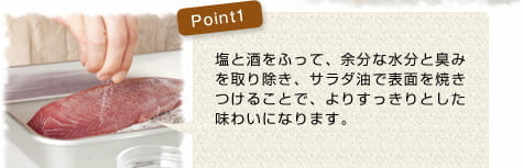 ![]() STEP3のかつおを取りだしペーパータオルでしっかりと水けを拭き取り、