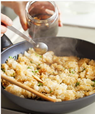 さらに1週間ほどおくと、うまみや香りがしょうゆに移り、風味もなめらかに。焼き飯の味つけ、かつおのたたき、から揚げの下味や青魚の煮ものにと、幅広く利用できます。