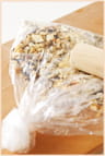 乾物を利用したふりかけは、ビニール袋に入れ、全体をめん棒でたたいて細かくします。素材どうしがよくなじむと同時に、調味料もよくからみ、味が均一になります。フードプロセッサーを使ってもよいでしょう。