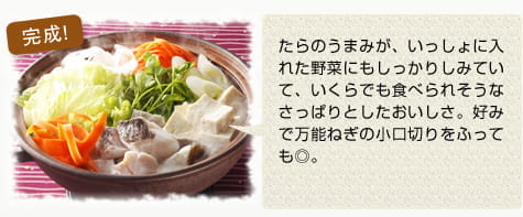 ヤマサ昆布ぽん酢のまろやかなうま味が大根おろしとたらにしみこみます。ご飯によく合う1品です。 |
