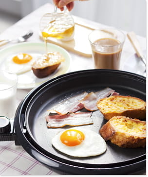 家族の中で身支度ができた人から、バラバラに食卓につくというのが、よくある朝食のシーン。作りたてのものを食べさせたいと思っても、家族一人ひとりのスケジュールに合わせるには、それなりに手間がかかってしまいます。朝ごはんにもホットプレートを活躍させてみませんか?