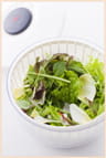 基本の生野菜のサラダをおいしく作るコツは、なんといっても野菜の水けをしっかりきること。そこでぜひ使ってみていただきたいのが、遠心力を利用して野菜の水けをきる「サラダドライヤー」です。おどろくほど水けがきれて、野菜がパリッ! ドレッシングもよくからんで、おいしさに差がでます。