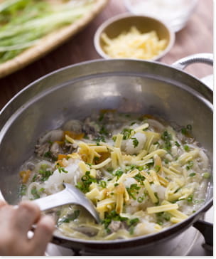 お鍋の最後は、ご飯やうどんをプラスしてしめている人も多いはず。ピリ辛のお鍋ならラーメンを入れてもおいしいですね。野菜たっぷりお鍋で残ったつゆには、うま味だけでなく野菜の栄養も溶け込んでいますから、残さずいただきましょう。溶き卵を加えて雑炊にするのは定番ですが、それにチーズや焼のりなどをトッピングするのもおすすめ。