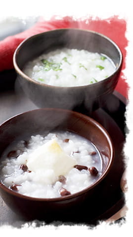 小豆粥は家族の健康を祈る習わしが中国から日本に伝わり、1年間無病息災でありますようにと願いながら食べるお粥です。お豆から煮るのはちょっと・・・と思いますが缶詰めや真空パックの茹で小豆を加えれば手軽にできます。
