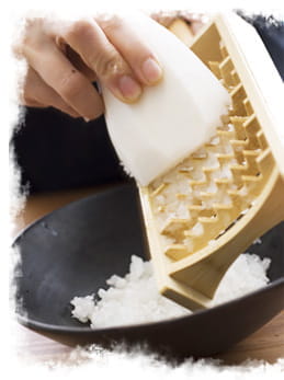 このギザギザした道具は鬼おろしという大根おろし器具です。いつも目にしている金属製のものとどこか違いますね。