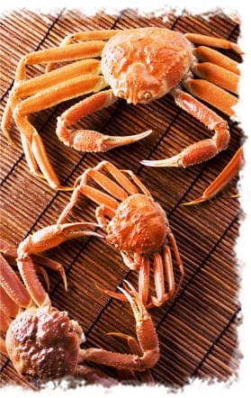 かにの王様とも呼ばれる「ずわいがに」。漁期は11月から3月と決まっていて、雄のかにのことを「ずわいがに」と呼びます。獲れる産地で呼び名が変わり、松葉がに、越前がにとも呼ばれます。成熟するのに、8〜10年と長くかかり、脚を広げると80cmにもなりますが、その割に頭の作りが小さい事から「頭矮(ずわい)」という名前がついたようです。