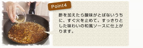 ![]() ソースを作る。フライパンにサラダ油小さじ1を中火で熱し、Aの野菜をさっと炒める。