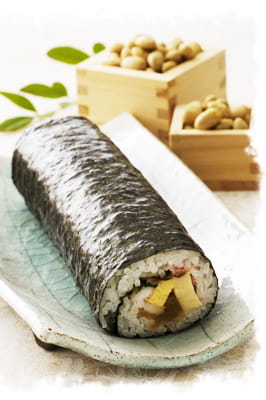 紅しょうがなど彩りよく入れると楽しい太巻きに仕上がります。 |