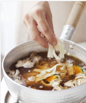 さらに、切ったワンタンの皮、春雨など、鍋にそのまま入れられる具をプラスするのもおすすめ。食べごたえがいちだんと増します。短く折ったそうめんやショートパスタなどを加えるのもよいでしょう。
