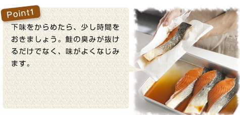![]() ![]() ![]() 鮭をバットに並べ、Aをまわしかける。