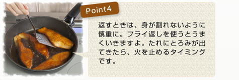 ![]() フライパンをいったん火からおろしてBを回し入れ、再び中火にかける。煮立ったら、