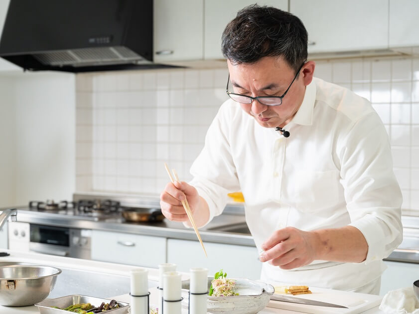 山本様:実は日本料理を習いたいと思っているんです。というのも、日本には刺身や新鮮な野菜を食べてきた文化があり、日本料理は鮮度の良い食材をおいしく調理する技術に長けています。いまでは世界各地で新鮮な食材を調達できるようになり、フレンチ業界では素材そのものを活かす味付けが存在感を高めています。フレンチの代名詞である“ソース”の概念が変わりつつあるんですね。そんな時代の節目にいるいまこそ、日本料理の繊細な味わいを生み出す技術を取り入れていきたいんです。