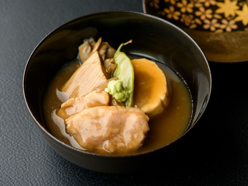 土屋様:海外からいらしたお客様も、以前に比べると格段に和食への理解が深まっていますね。お箸の持ち方、魚の食べ方といった作法もよくご存じで、世界各地で和食が親しまれている証でしょう。そのような方々にぜひとも加賀料理を知っていただきたいので、海藻やナマコのような海外では馴染みのない食材も遠慮なく使っています。これが当地の食文化なのですから。