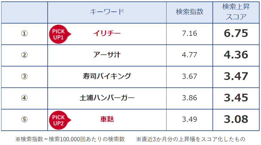 消費者の検索が伸びている、飲食関連のキーワードをご紹介します。何が注目されているのか、「消費者の今」がわかります。また、気になるキーワードをピックアップし、なぜ検索が急上昇したのかを探ります。