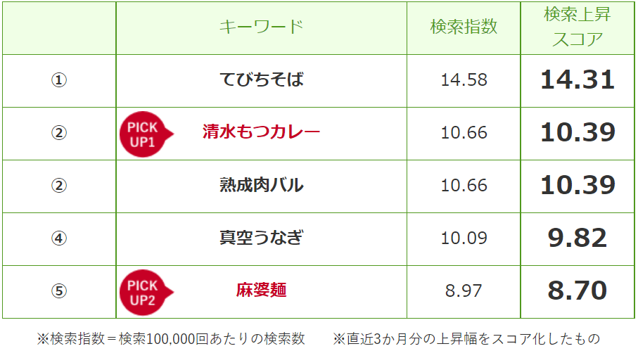 消費者の検索が伸びている、飲食関連のキーワードをご紹介します。何が注目されているのか、「消費者の今」がわかります。また、気になるキーワードをピックアップし、なぜ検索が急上昇したのかを探ります。