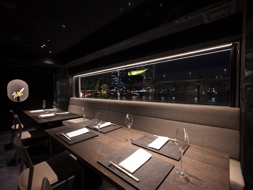 「かにかとう」の窓からは、屋形船が行き交う墨田川や吾妻橋が一望でき、季節ごとに日本らしい風情あふれる景色が楽しめます。それはお客様だけでなく岡田さんの心も癒やし、思考をクリアにしてくれるのだとか。「観光客の多いエリアなので、このお店の料理がお客様の旅の思い出として記憶に残るとうれしいです。食は体験。食べてよかった、来てよかったと思ってもらえるような、ワクワクするような瞬間や心落ち着く場を、共に働くスタッフの力を借りながら、今後も作り続けていきたいです」。