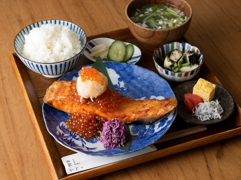 ごはんは中村さんの故郷、新潟県岩船産の米。ランチの一番人気「銀鮭のいくらおろし定食」の鮭は鮭の産地でもある新潟県村上市から取り寄せるなど、「安心と安全、そして質を落とさないために、食材調達では人との縁を大切にし、地方の生産者やこの地域の販売店とWin-Winの関係を築いていくよう心がけています」と中村さんはいいます。