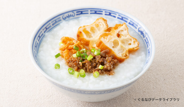 「おかゆ」の一種で、台湾発とニューヨーク発のものが一般的である。台湾では、出汁でお米を煮込んだスープご飯として、ニューヨークでは、ココナッツミルク等の植物性ミルクで作るおかゆとして親しまれている。