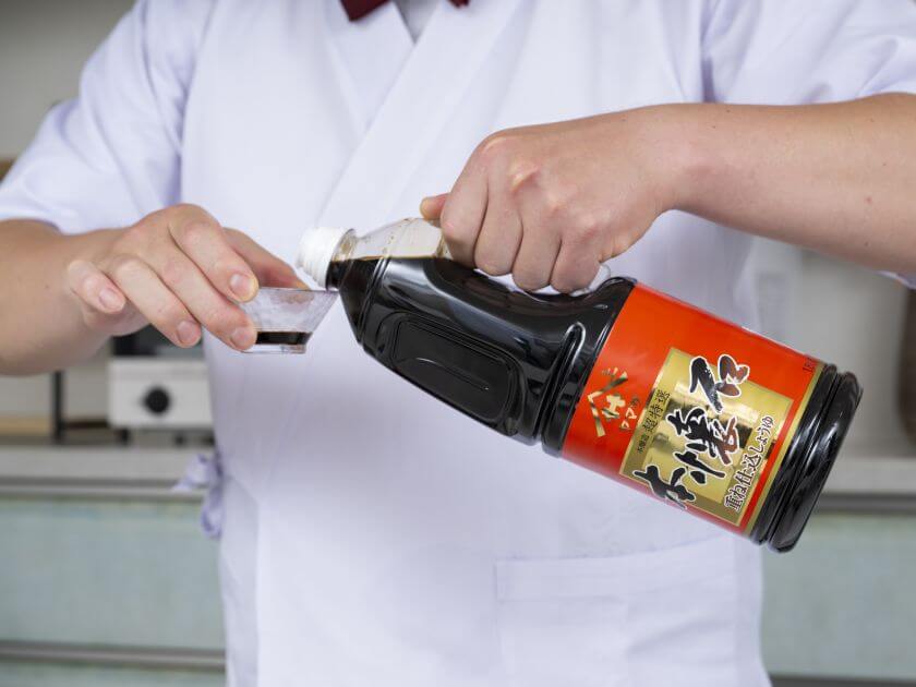 「ヤマサ重ね仕込みしょうゆ 本懐石」は、完成度が高いんです。香りや味のシャープさを失わないように、手を加えず、炊き立てご飯や海苔につけて食べるくらいがちょうどいい。だから、このメニューでも醤油に火を通しません。太白油は香りづけと素麺の表面に膜を張ってのど越しをよくするために入れ、黒コショウには味のアクセントという役割があります。ラーメンのような仕上がりなので、海外の人も受け入れやすいようです。お酒を飲んだ後の2軒目としてお店に来てくださったお客様にも好評ですね。