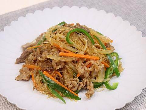 韓国料理で人気なチャプチェも、「ヤマサ 香味だし醤油 醤湯(ジャンタン) 牛だし」を使えば手軽に本格的な味わいに。春雨以外にもビーフンやそうめんでも、おいしくいただけます。