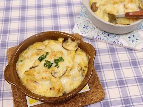 「ヤマサ 香味だし醤油 醤湯(ジャンタン) 海鮮だし」はグラタンなどの洋食にも大活躍♪「ヤマサ 香味だし醤油 醤湯(ジャンタン) 海鮮だし」を効かせたホワイトソースで、ワンランクアップの洋食屋さんの味わいが楽しめます。