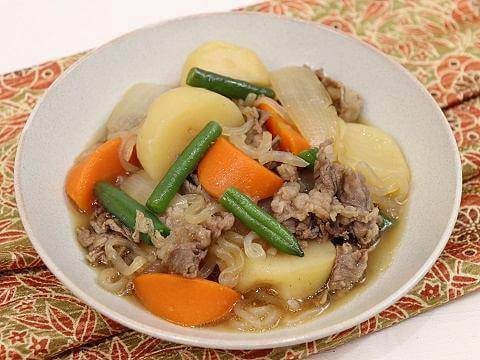 定番の肉じゃがも「ヤマサ 香味だし醤油 醤湯(ジャンタン) 牛だし」を使えば、ワンランクアップの味わいに!肉はもちろん、「ヤマサ 香味だし醤油 醤湯(ジャンタン) 牛だし」の旨味が染みこんだじゃがいもは絶品です。