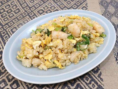 むきえびのピンクと卵の黄色が食欲をそそるチャーハン。「ヤマサ 香味だし醤油 醤湯(ジャンタン) 海鮮だし」だけで、芳ばしい卵チャーハンが簡単に仕上がります。
