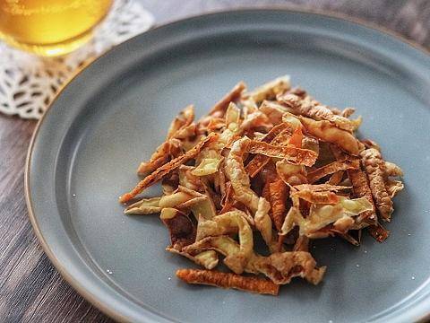 最後にもう1品、番外編として、おやつやおつまみにおすすめな「野菜の皮チップス」をご紹介します♪