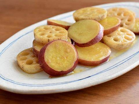 さつまいもとれんこんが余ったら、ぜひ試していただきたい「だししょうゆマリネ」。ローズマリーやタイムなど、ハーブと一緒に焼くとより一層奥行きのあるおいしさになります。「ヤマサ鮮度生活 だししょうゆ」のまろやかな味わいと旨味が、素材の味を存分に引き立てます。