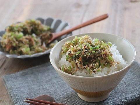 大根の茎の食感とかつお節の香ばしさに、「ヤマサ昆布つゆ」の深みのある旨味とコクで全体をまとめたソフトふりかけ。大根の茎の代わりに、余った小松菜でも作れます。