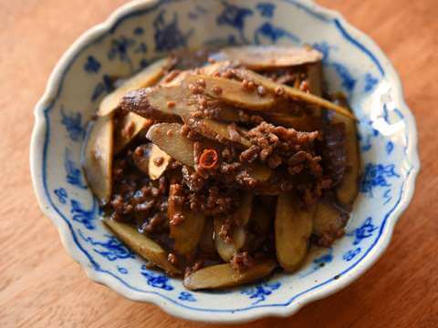 ■ごぼうと牛そぼろのつゆだくきんぴら