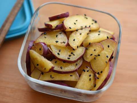 シンプルなさつまいものきんぴらは「ヤマサ昆布つゆ白だし」で味付け簡単。昆布の旨味とやさしい塩味がさつまいもの甘味を引き出してくれます。