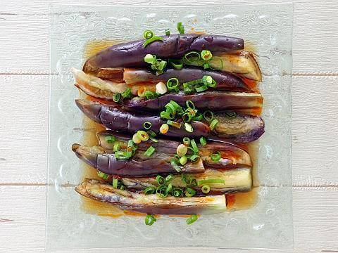 電子レンジで3分♪とろっとした食感のなすに、「ヤマサ ぱぱっとちゃんと これ!うま!!つゆ」をかけるだけ。なすは包丁で切らずに、電子レンジにかけてから手で裂くと、きれいな色に仕上がります。