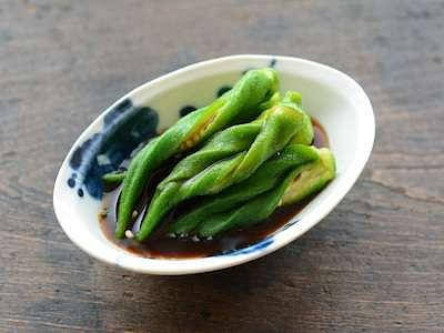 「ヤマサ 絹しょうゆ」に酢と練り辛子を合わせた、ぴりっと爽やかな辛子酢醤油が夏バテ予防にもぴったりの一品。