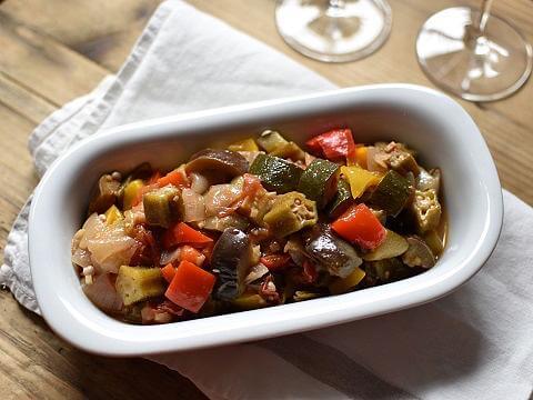 「ヤマサ昆布つゆ」+酢で、さっぱりと仕上げた和風ラタトゥイユ。冷蔵庫で味をなじませるとより美味しくなります。