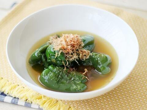 野菜を丸ごと使っているので栄養たっぷり♪レンジやグリルで加熱したピーマンを、「ヤマサ ぱぱっとちゃんと これ!うま!!つゆ」で漬け込むだけで完成!