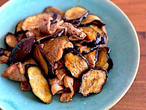 ■半干しなすと豚肉のピリ辛バターしょうゆ炒め