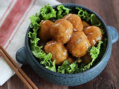 味付けは「ヤマサ 万能クッキングたれ Yummy! ガーリック&ペッパー」1本にお任せ!子供も大人も大好きなミートボールが、電子レンジで簡単に完成。