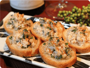 蟹とスプラウト、パルミジャーノチーズのブルスケッタ