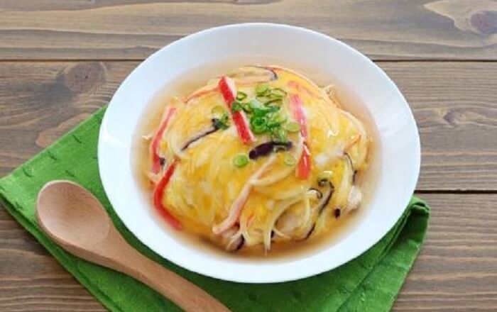 ふわとろ卵の食感がおいしい、絶品天津飯!「ヤマサ昆布つゆ 白だし」を使えば、だし取り不要で上品なあんを手軽に作れます。