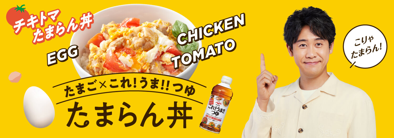 和洋中、幅広いジャンルに使用できる「ヤマサ ぱぱっとちゃんと これ!うま!!つゆ」。どんな食材、どんなジャンルの料理とも相性の良い“卵”と「これ!うま!!つゆ」で作る、おいしくてたまらない“たまらん丼...