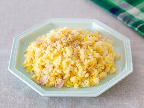 耐熱ボウルに具材を入れてチン!まるで中華屋さんのチャーハンが5分で完成します。