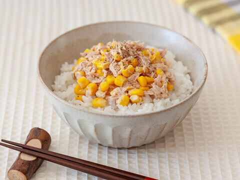 包丁もまな板も不要!ツナ缶とコーン缶を使ったお手軽丼が3分で完成します。