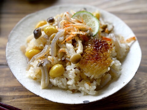 ■銀杏としめじとたっぷりこんにゃく釜飯